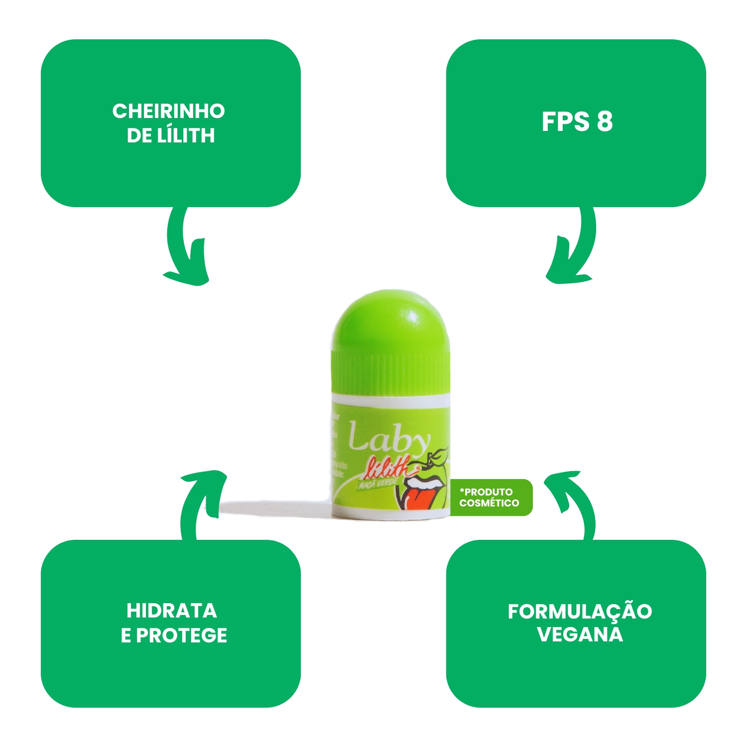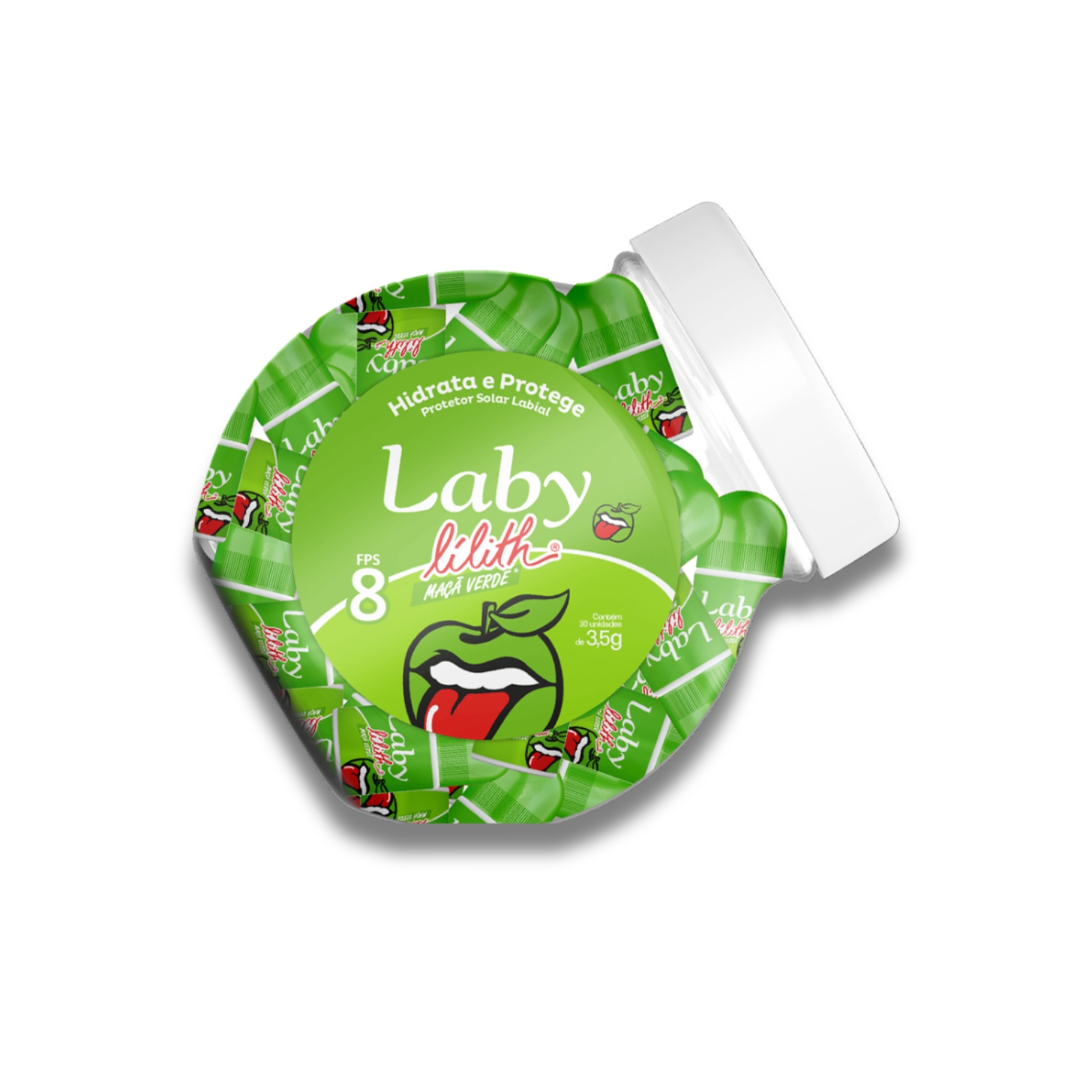 Protetor Labial Laby Lilith Maçã Verde Push Pull – FPS 8 | Pote com 30 Unidades